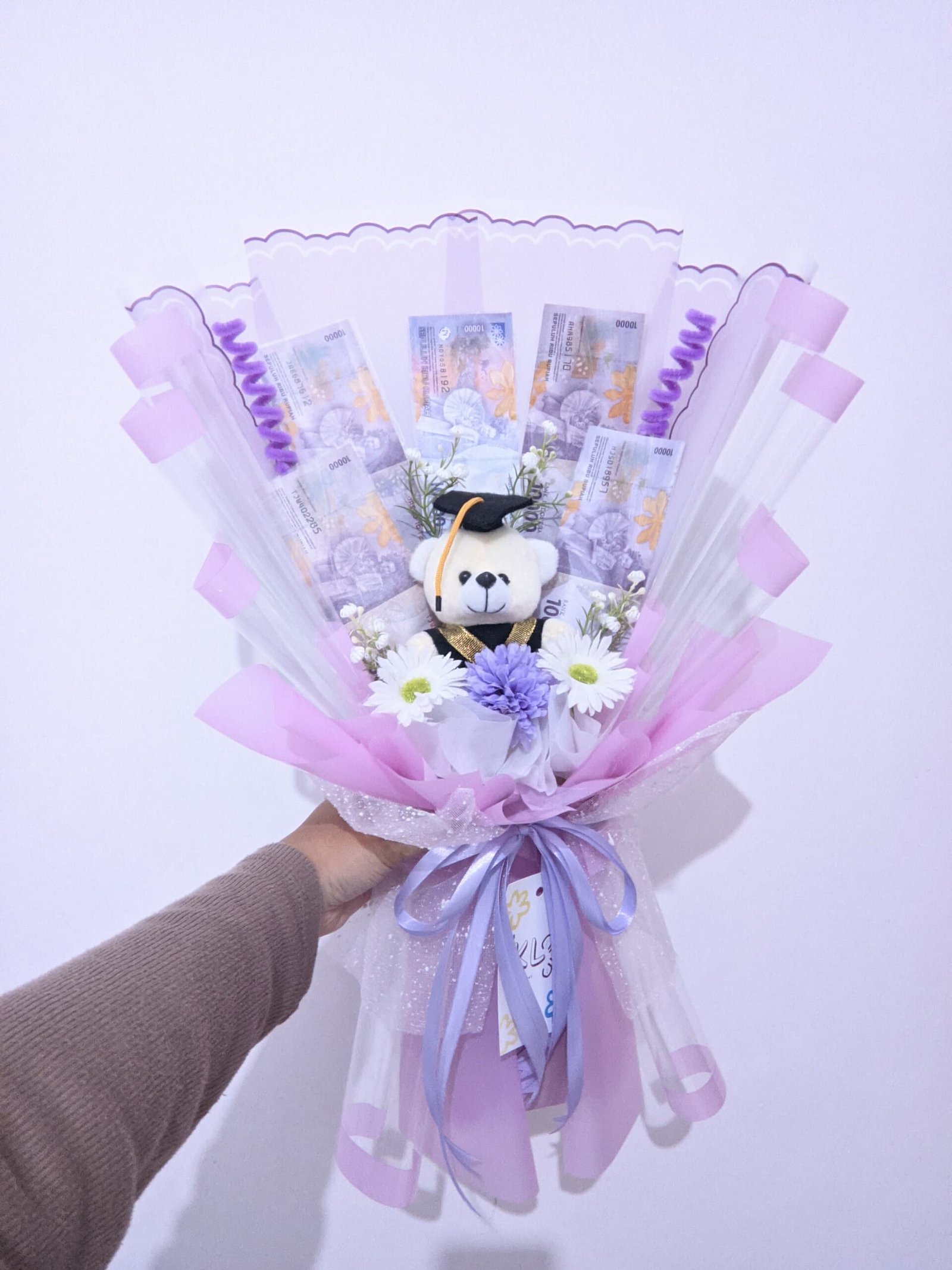 Rayakan pencapaian terbesar dalam hidup dengan buket wisuda yang penuh makna! Desain eksklusif yang menggambarkan kebanggaan dan harapan untuk masa depan cemerlang.